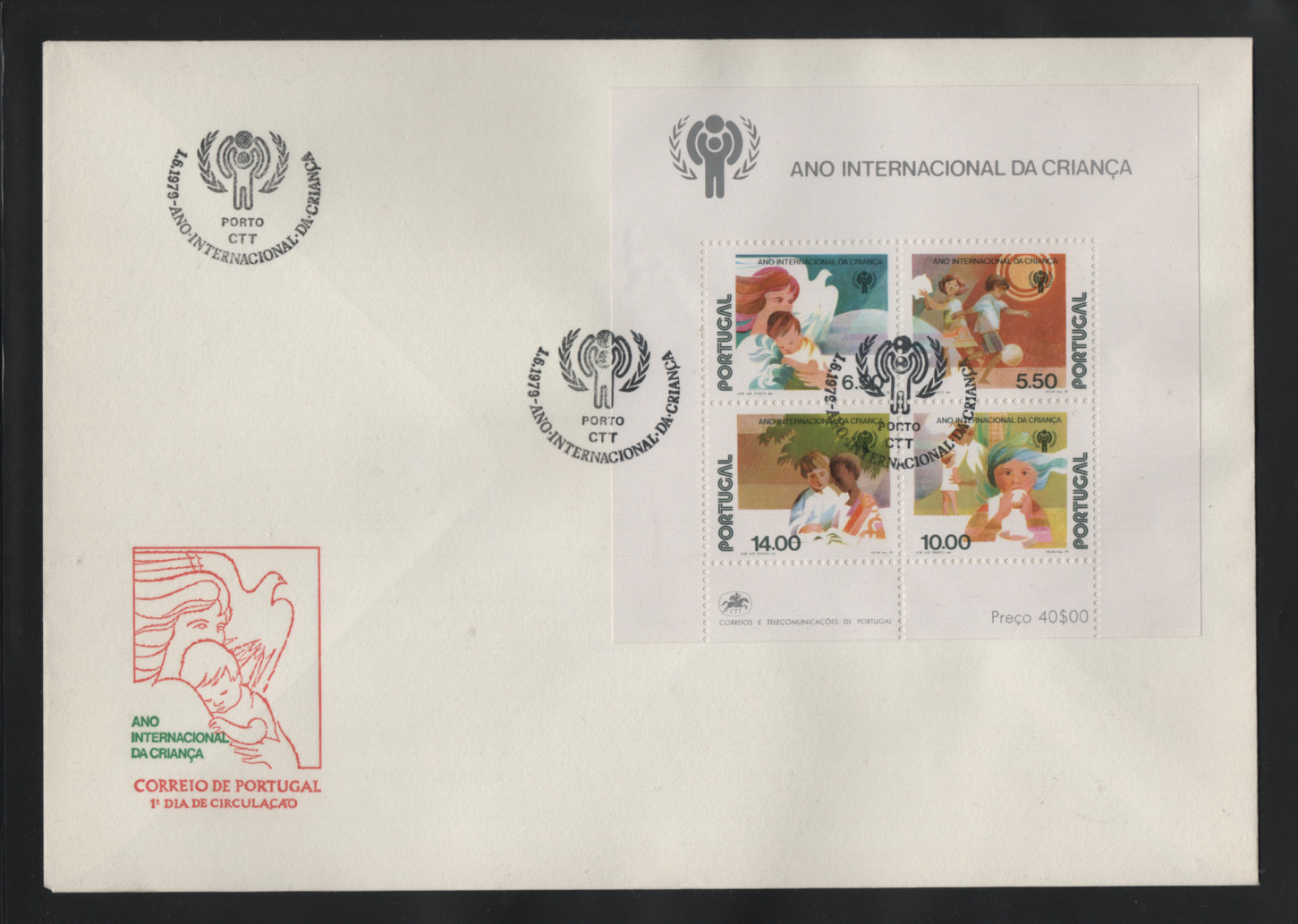 1979 - FDC Souvenir Sheet n. 28. International Year of the Child. Porto cancel. In good condition.